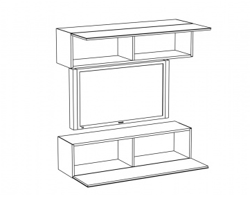 Модульная система «Cubo 9» предназначена для обустройства гостиной комнаты или спальни. Все модули представленного образца крепятся к стене.