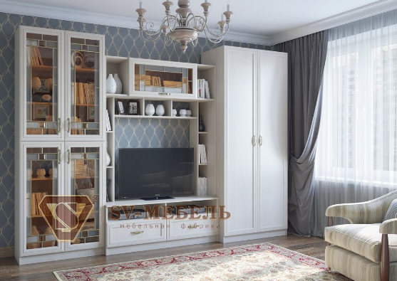 код 16868Шкафы, стеклянная витрина, тумба с полками, комод и другие модули на любой вкус.