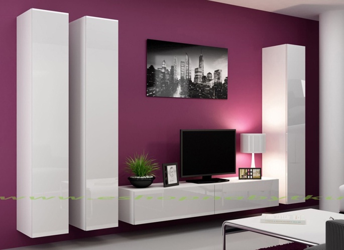 Гостиная «София» - это великолепие белого глянца в сочетании с серебристыми деталями. Материал: МДФ покрытый плёнкой, ЛДСП.