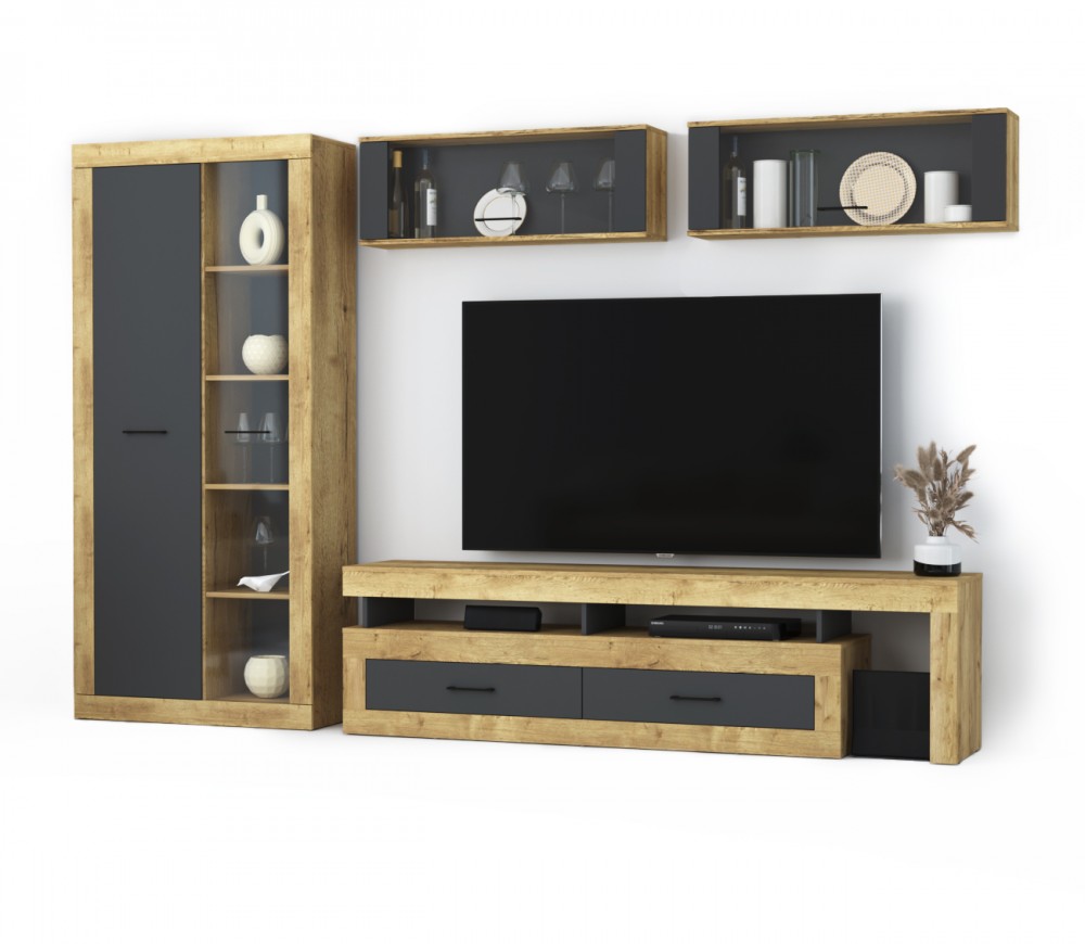 Модульная коллекция мебели в цвете дуба с черным обрамлением. Материал: ЛДСП.