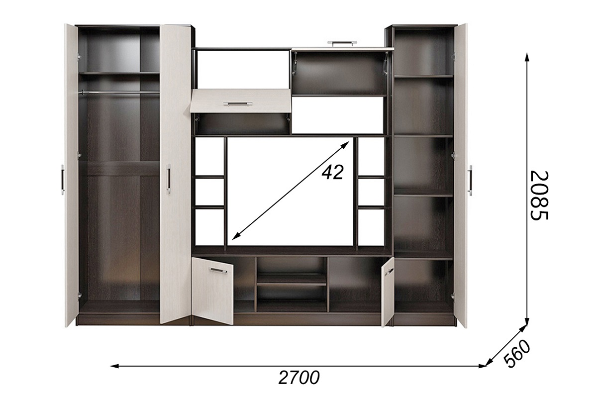 Размер (ШхГхВ): 2648х456х1872 мм. Материал: ЛДСП.