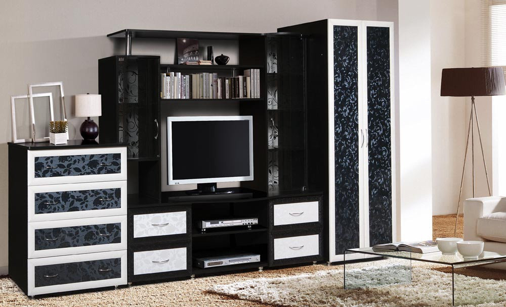 Многофункциональная стенка в стильной расцветке фасадов.