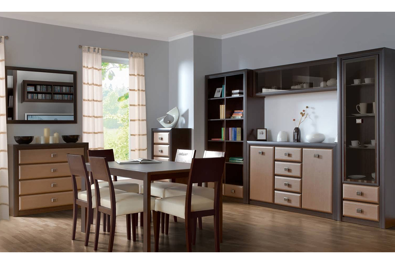 Отделка декоративными планками придает набору мебели «Коен» массивность и величие, при этом сохраняя шарм и изящность конструкции. Цвет венге подчеркивает элегантность мебели, а квадратные ручки придают конструкции дизайнерскую законченность.