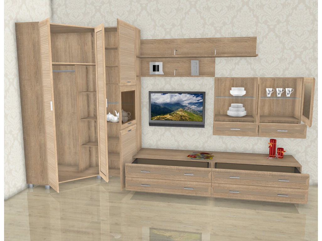 Модульный набор мебели для гостиной. Материал: ЛДСП.