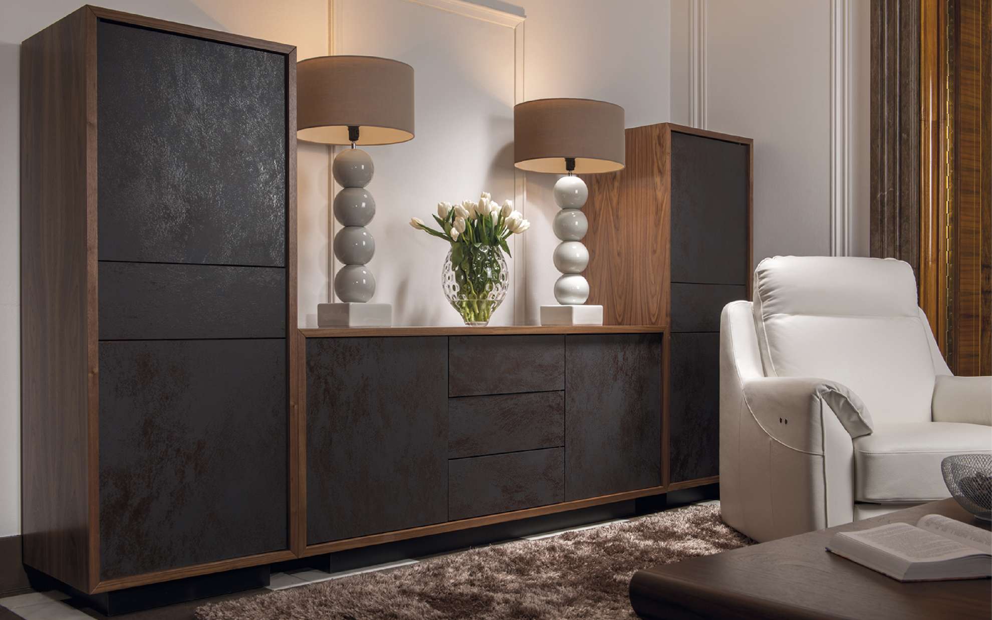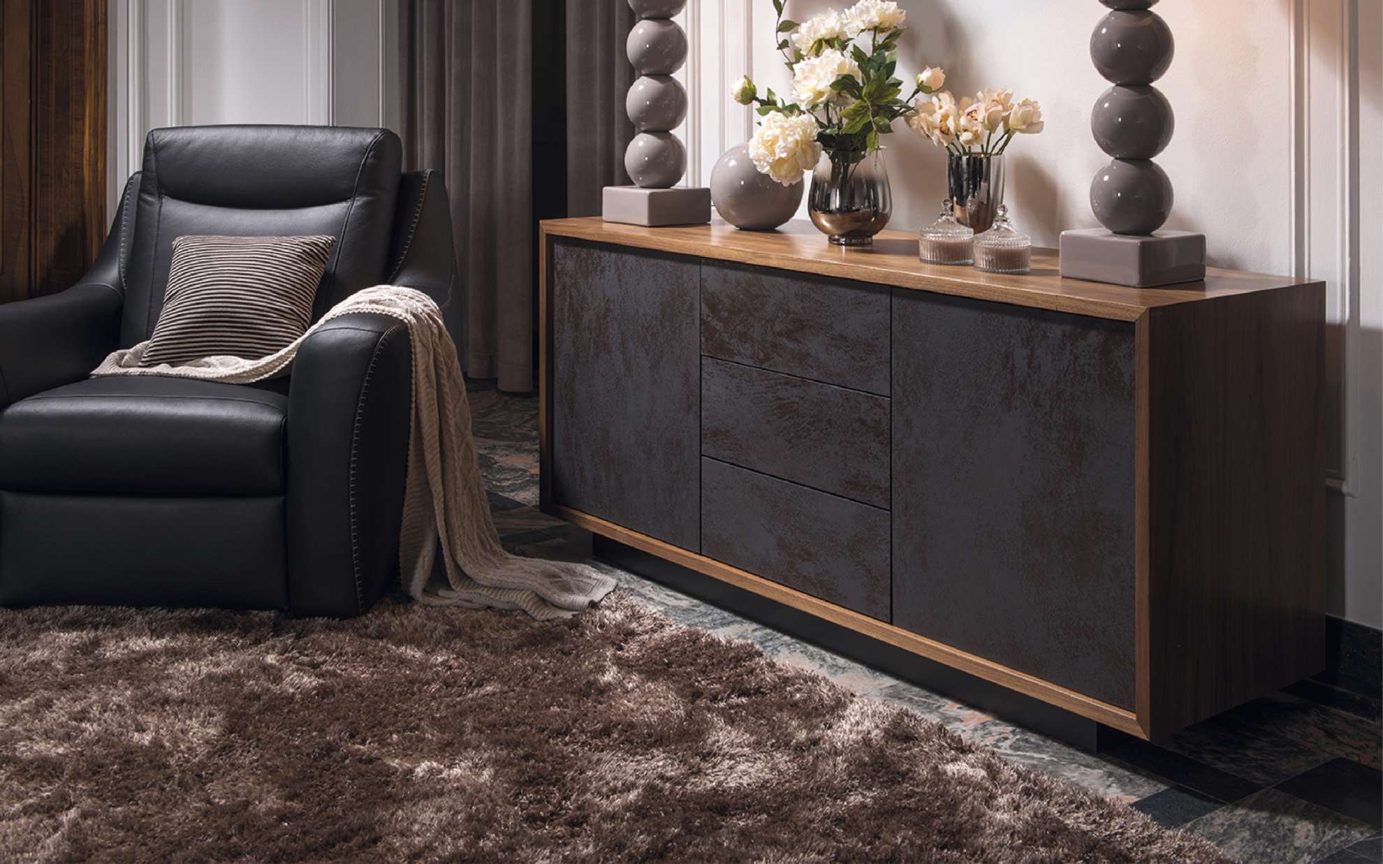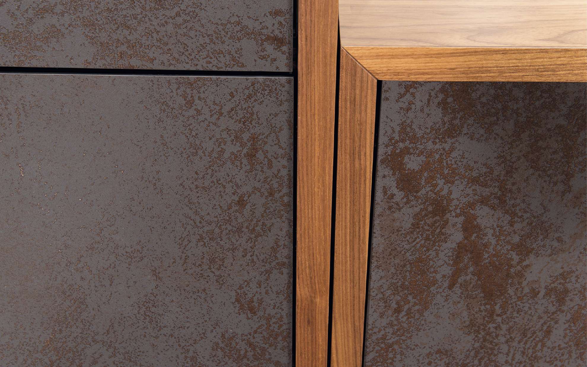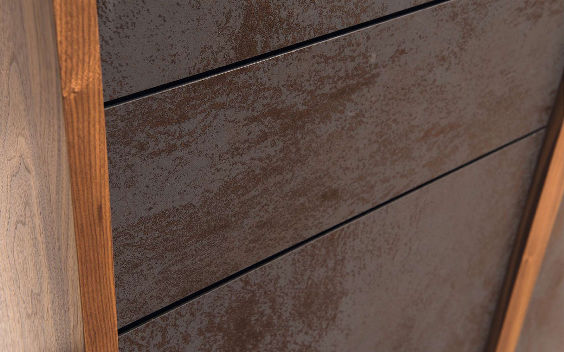 Корпус: натуральный шпон. Выдвижные ящики изнутри выстланы материалом с текстурой кожи.
