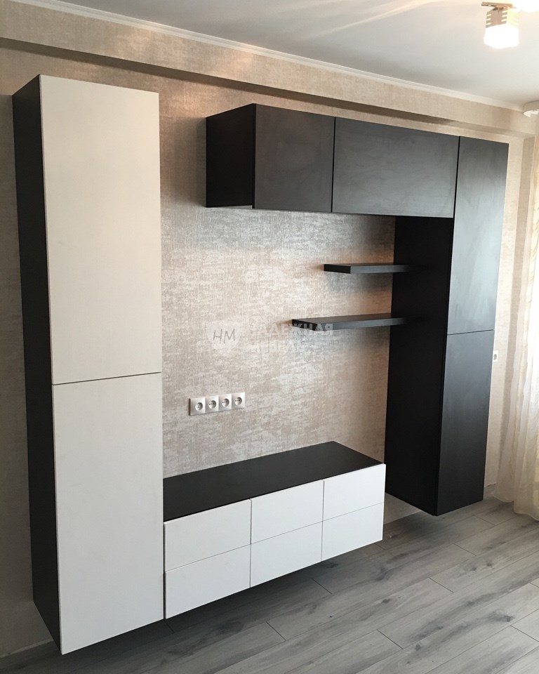 Подвесная гостиная из ЛДСП в черно-белом цвете