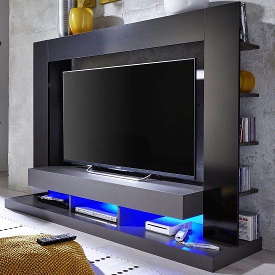 Широкое место для ТВ, ниши для техники, книжные полки. Возможна подсветка.