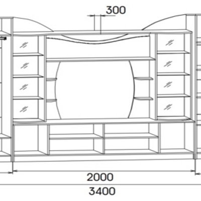 Размер ниши под телевизор: 1200х870 мм.