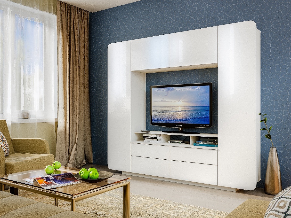 Гостиная «Йорк с комодом» Белый/Белый глянец