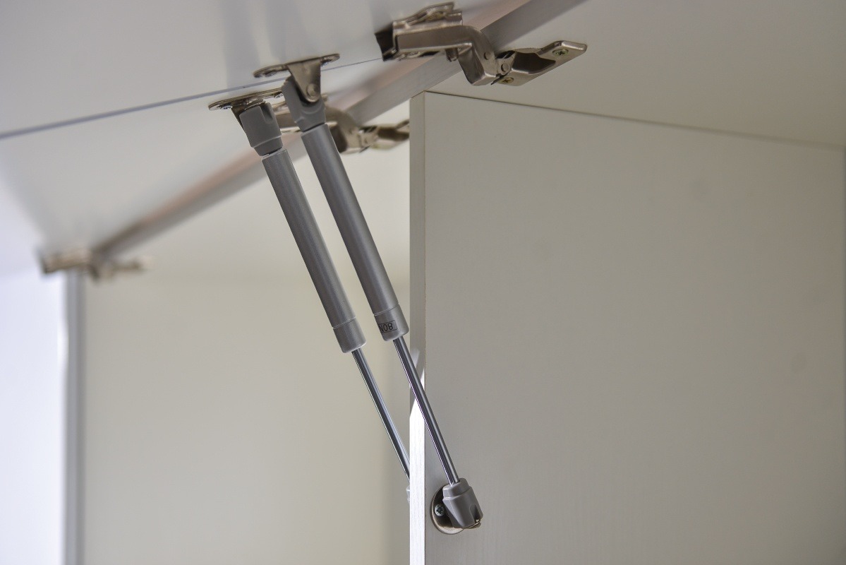 П-образная двухцветная горка. Фасады не оснащены ручками. Глянцевая поверхность.