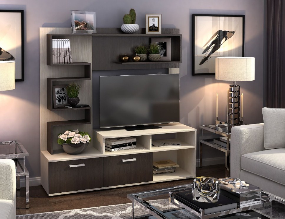 Модульная стенка для гостиной в стиле минимализм.