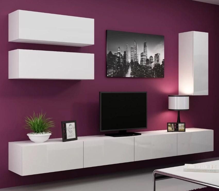 Стенка в стиле минимализм с фасадами однотонного белого цвета.