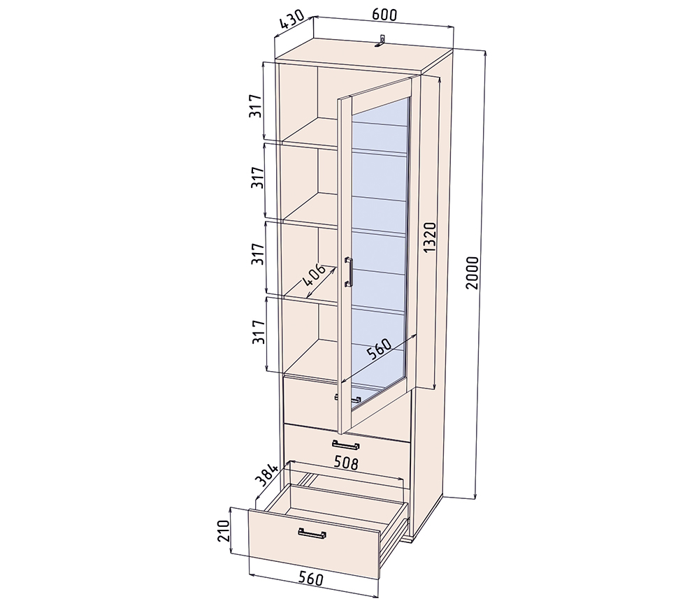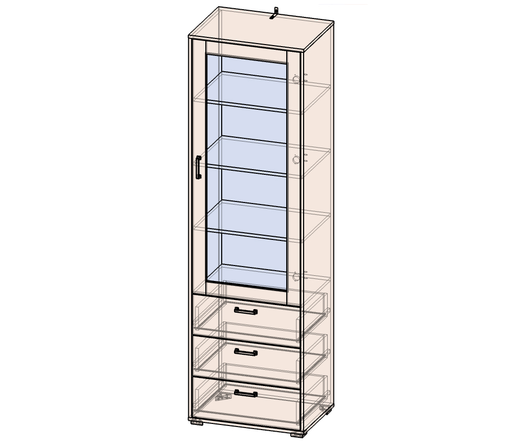 Шкаф с витриной не только красив, но и очень функционален. В нём вы сможете хранить свои вещи, не переживая о том, что они потеряются или испортятся. Прочное калёное стекло витрины защитит ваши предметы от пыли и влаги, а шариковые направляющие обеспечат плавное и бесшумное открывание и закрывание дверей.