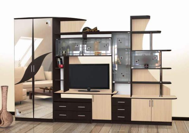 код 103692Функциональная модель. Оснащена множеством полок и ящиков, местом для тв и 2ствр. шкафом.