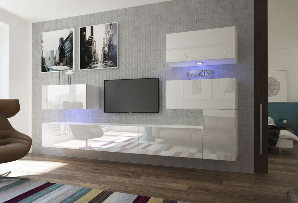 код 101816Стенка из трех сегментов с глянцевыми фасадами.