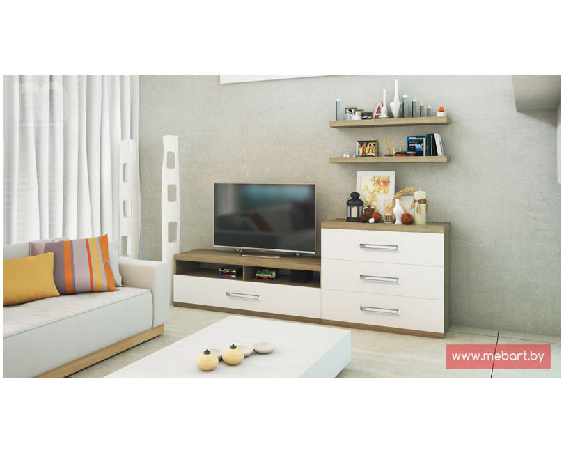 Гостиная модульная «Дора-2» 3.28 м (дуб сонома-белый глянец)