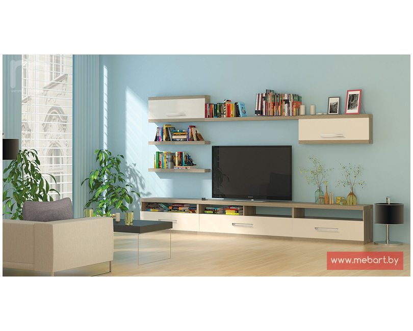 Стильная стенка с покрытием из экошпона. Ширина: 320 см.