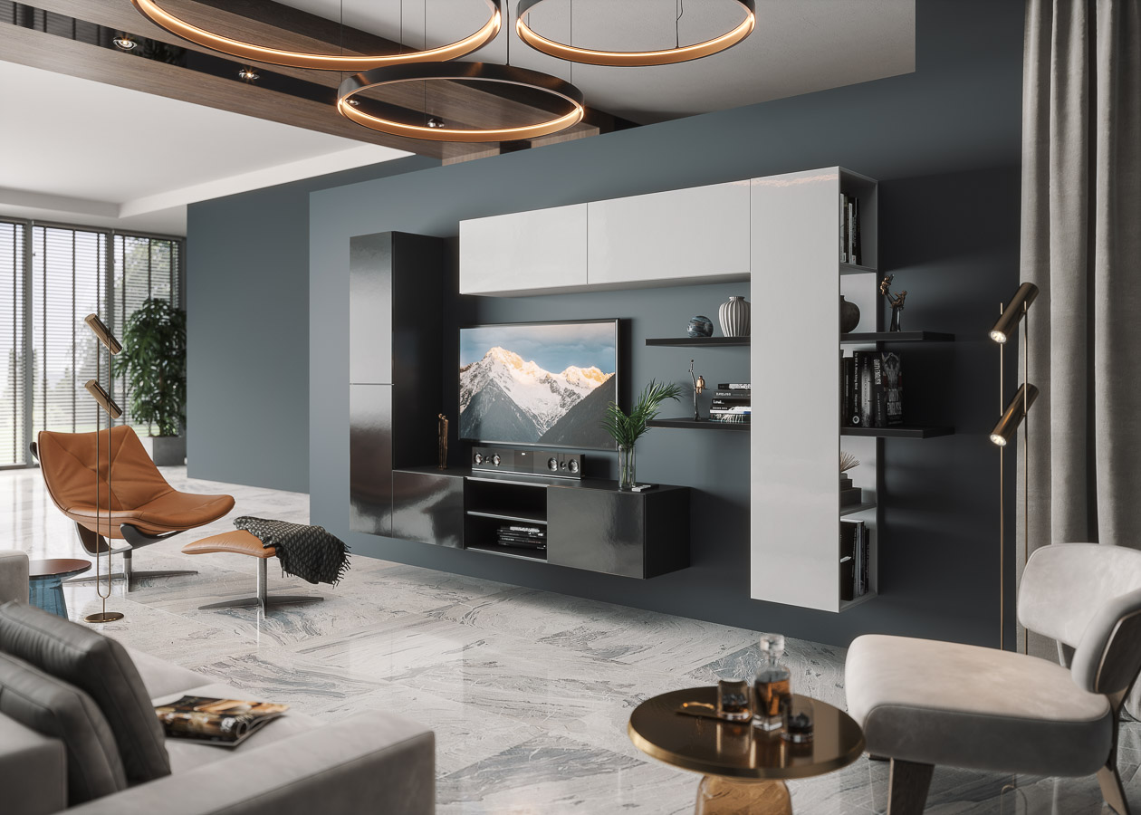 код 143141Подвесная горка в черно-белыми глянцевыми фасадами. Материал: ДСП, МДФ.