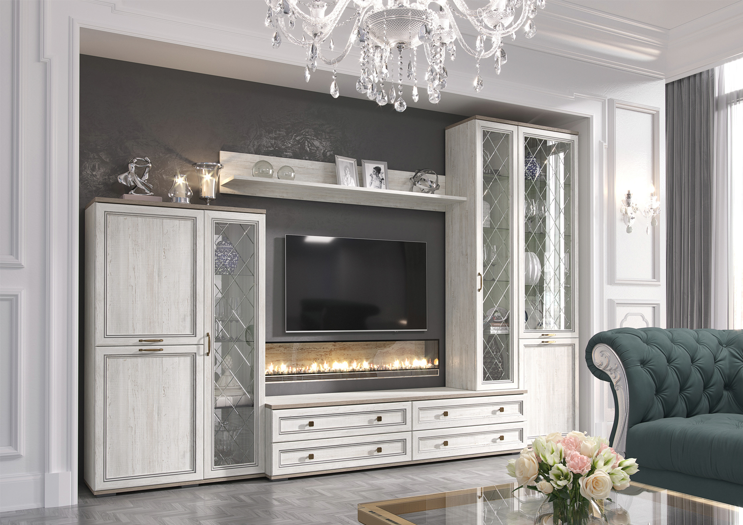 Удобная ниша под ТВ вмещает телевизоры шириной до 1200 мм.