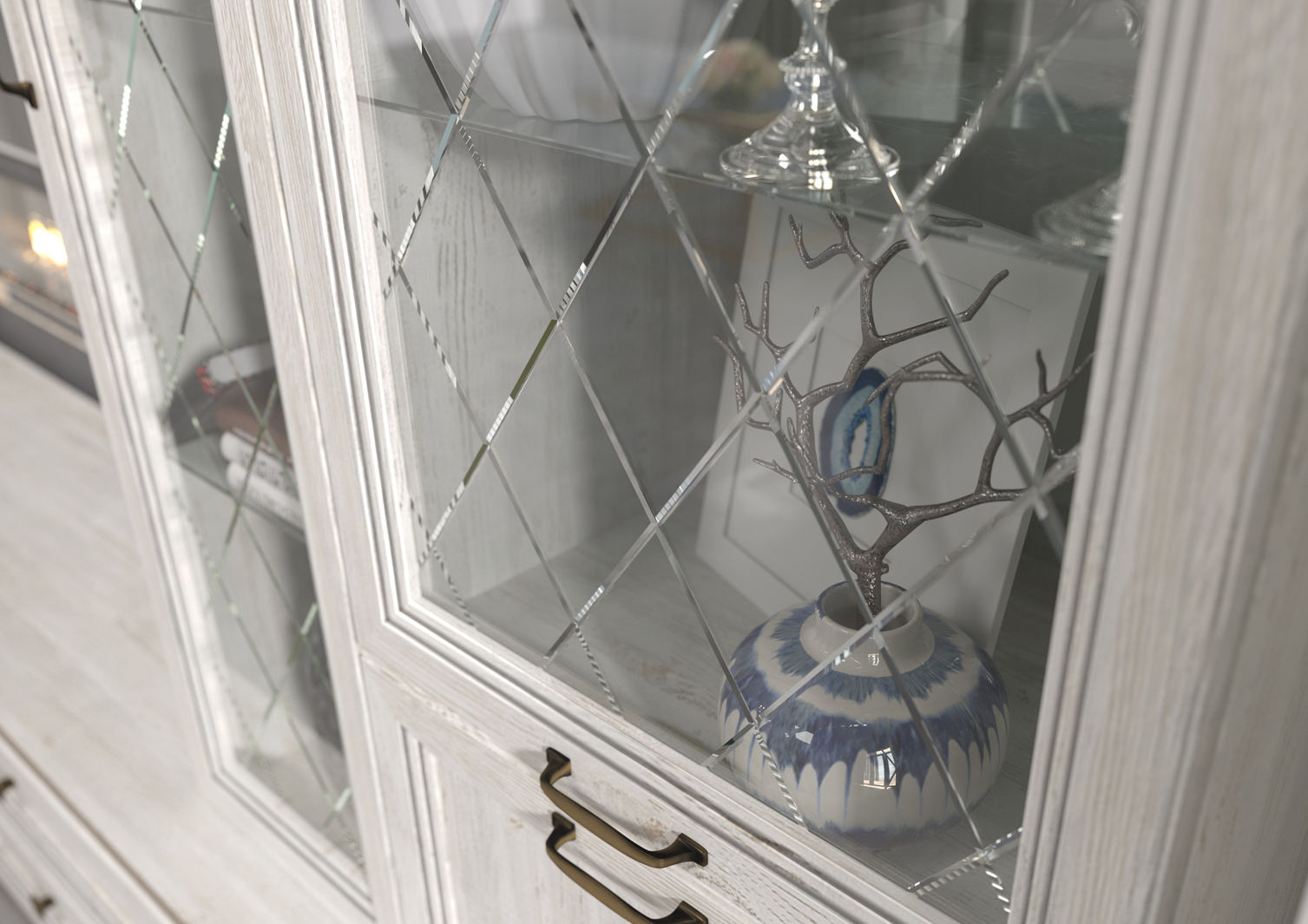 Коллекция корпусной мебели в кремовом оттенке для гостиной. Материал: ЛДСП, МДФ.