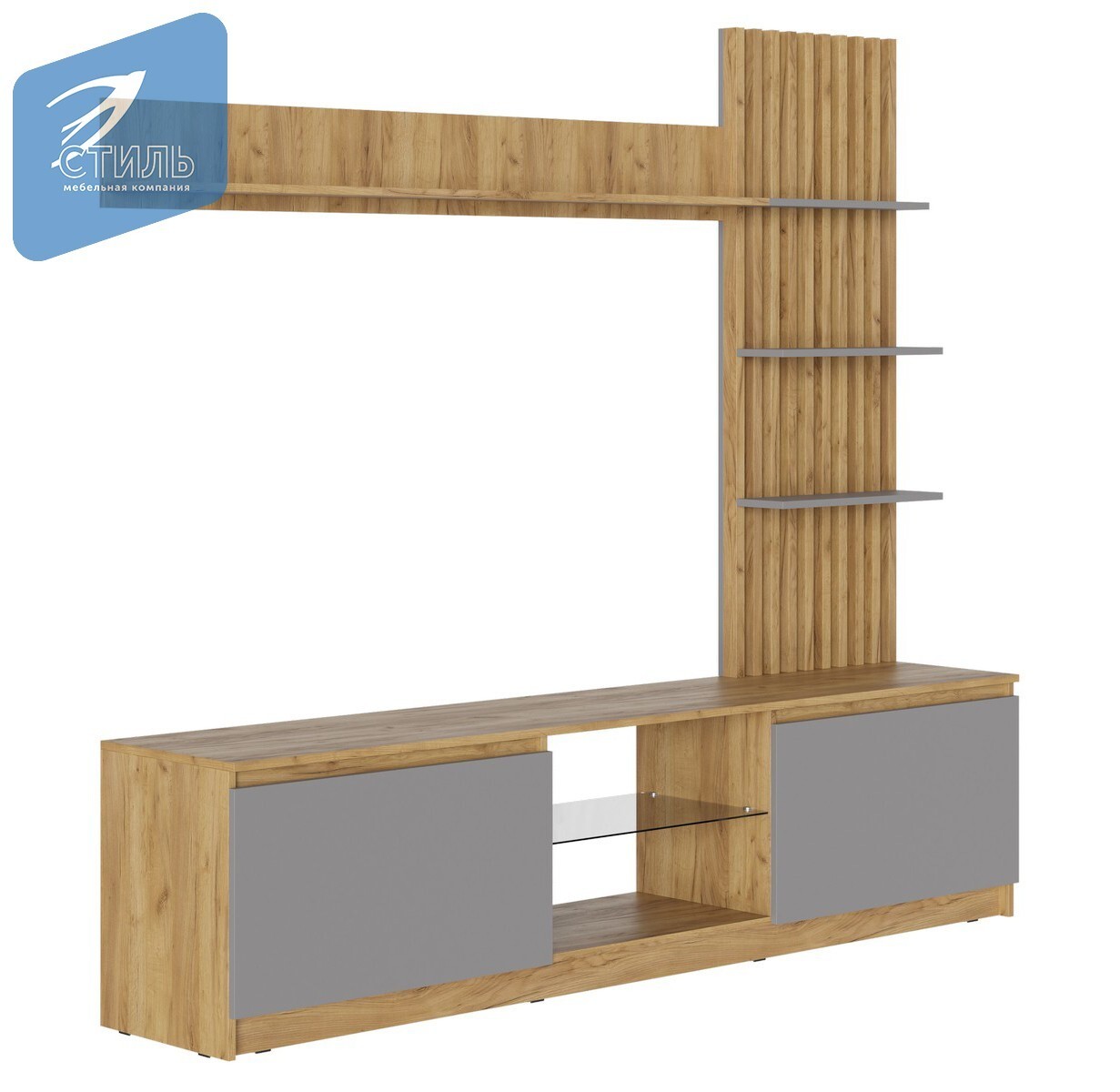 Стенка «БОСТОН НМ-001» МДФ дуб крафт золотой/серый шифер