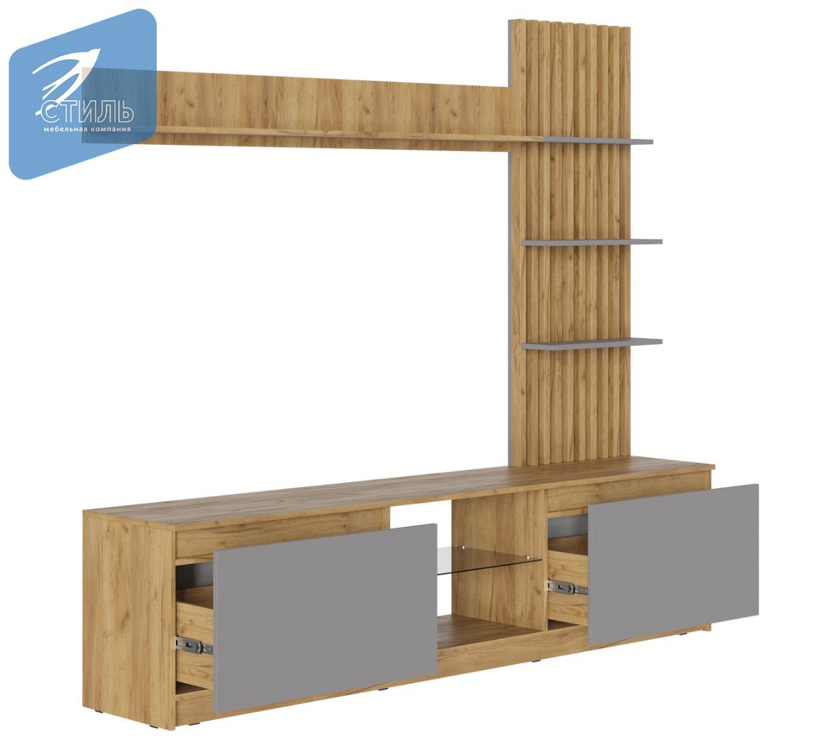 Стенка «Бостон НМ-001» Серый шифер/ Дуб крафт золотой(МК Стиль)