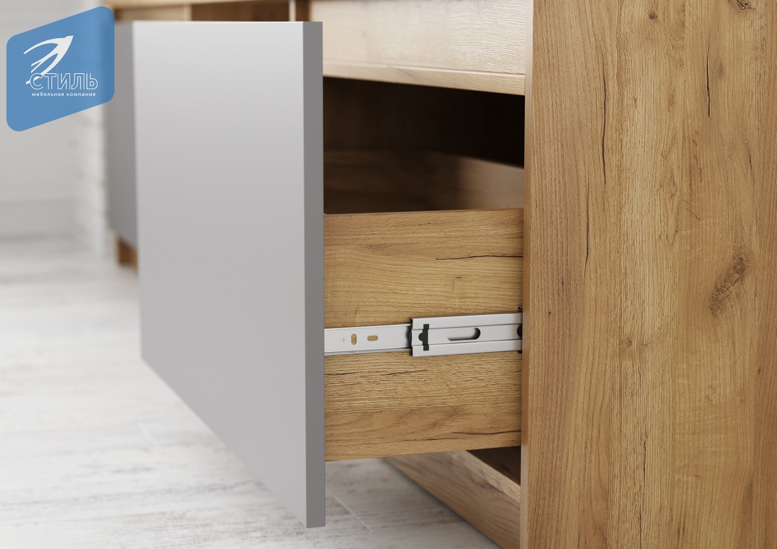 код 131200Ящики без ручек - открывание с помощью захвата фасада ящика рукой.