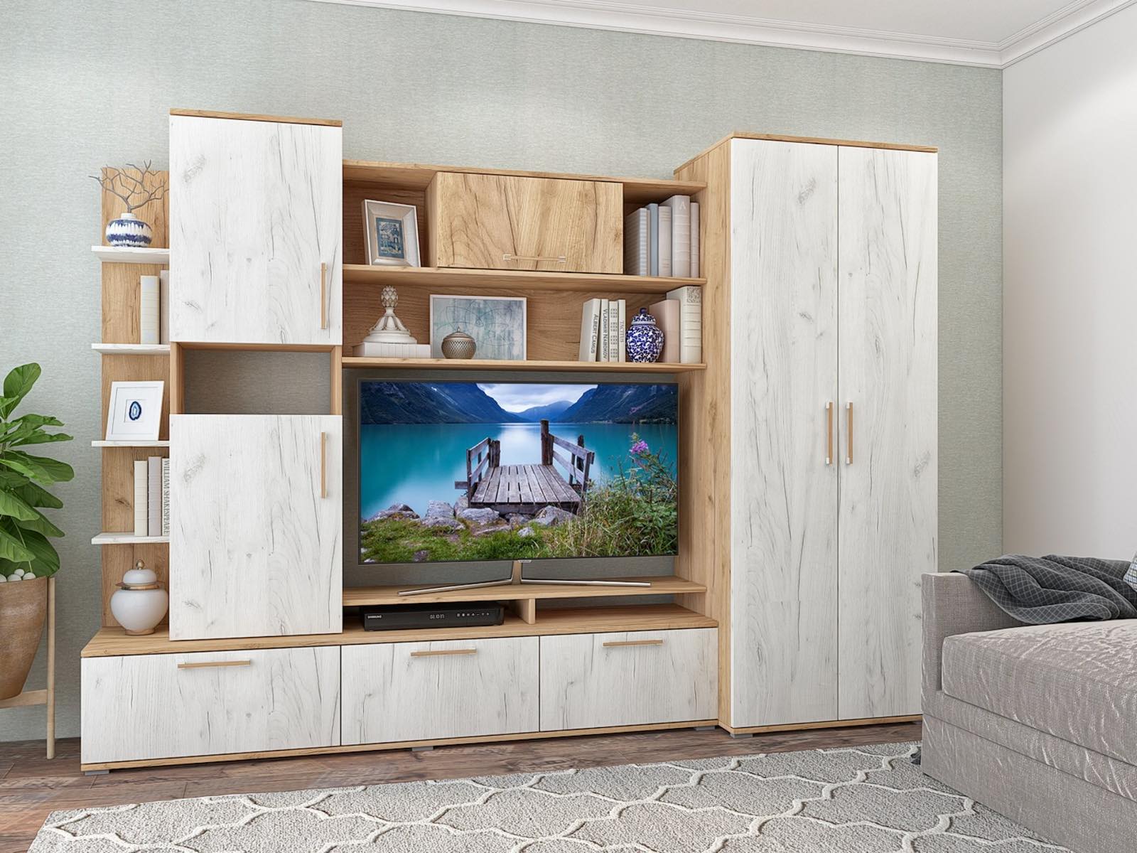 Гостиная «Кармен» дуб вотан/белый глянец - МебельЭра