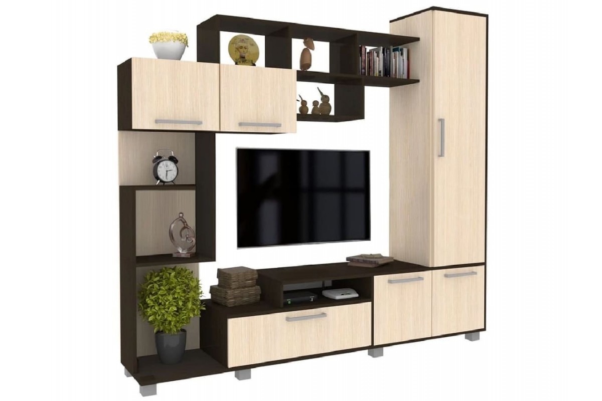 Подвесная тумба для ТВ, два пенала и витрина с подсветкой.