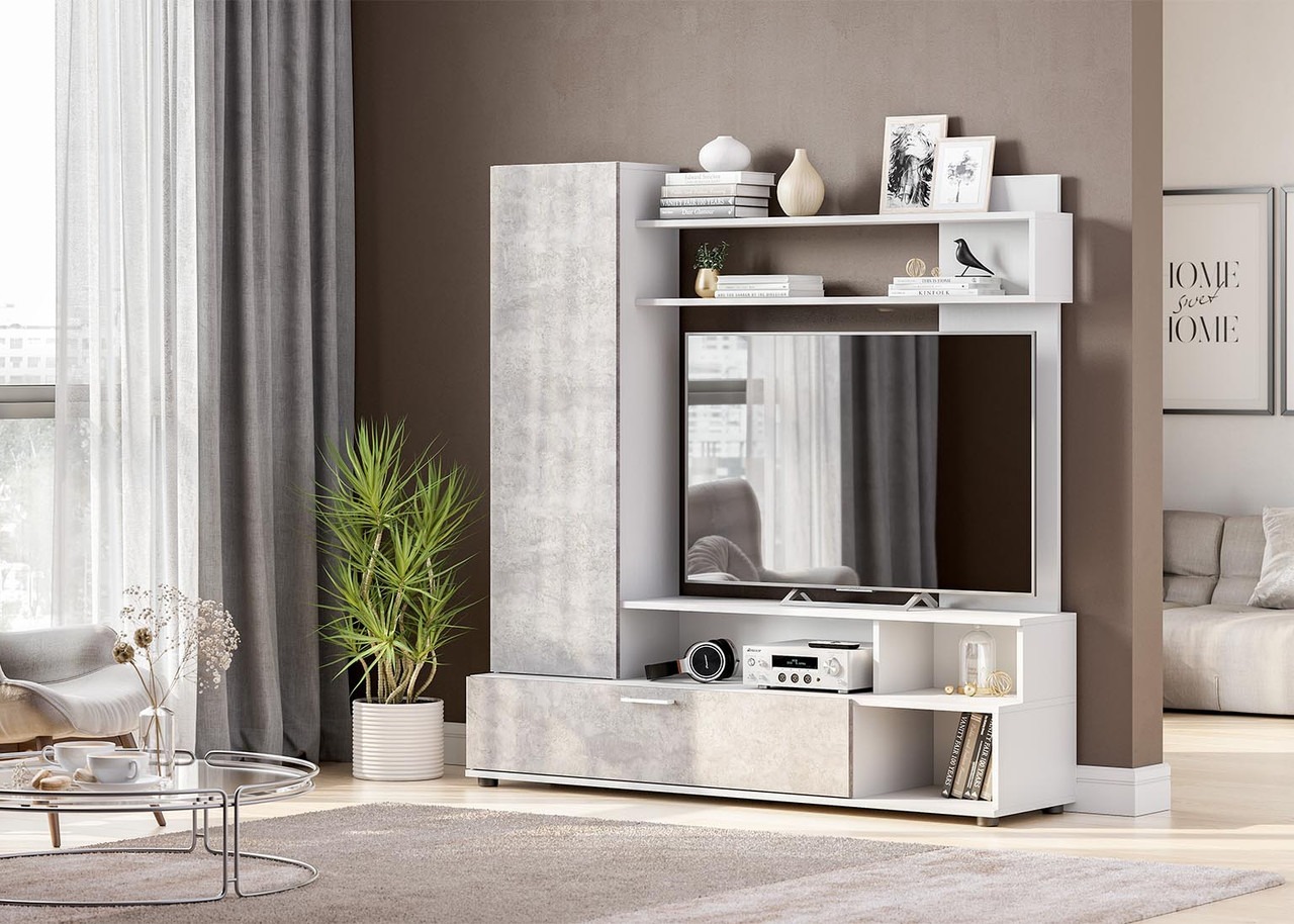 Стенка для гостиной «МГС 9» Белый - Цемент Светлый