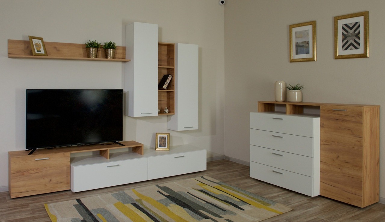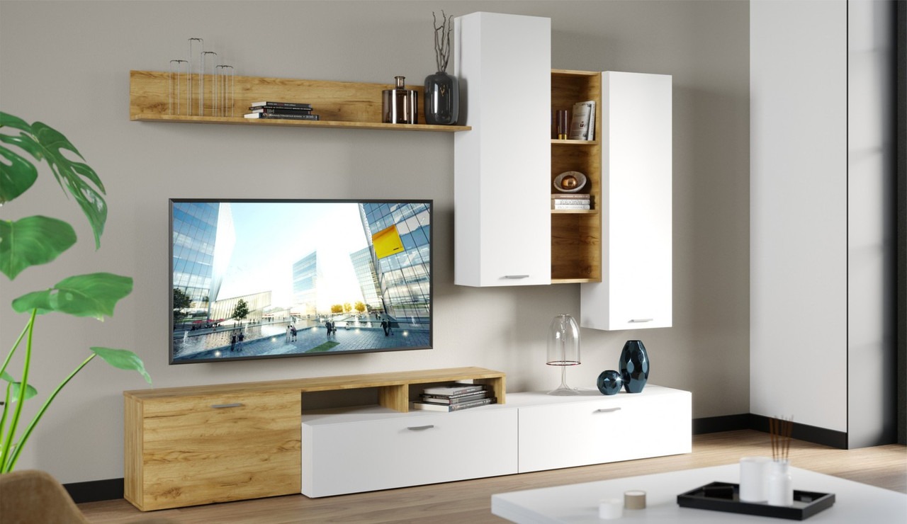 Стенка для гостиной «Невио-1» Дуб Крафт Золотой - Белый