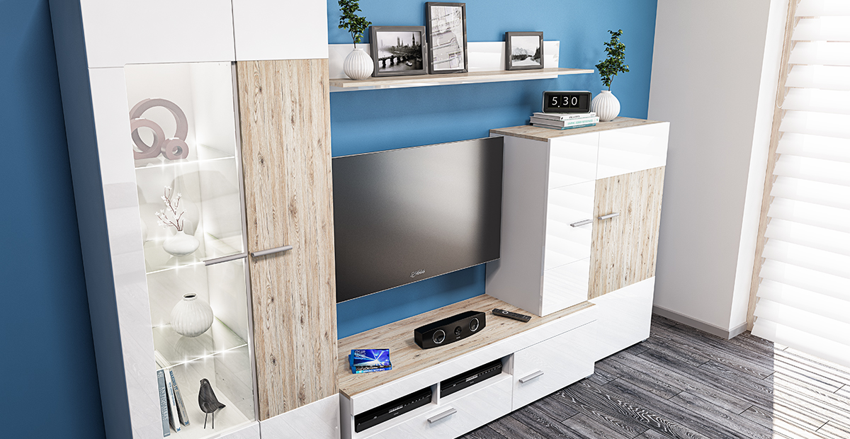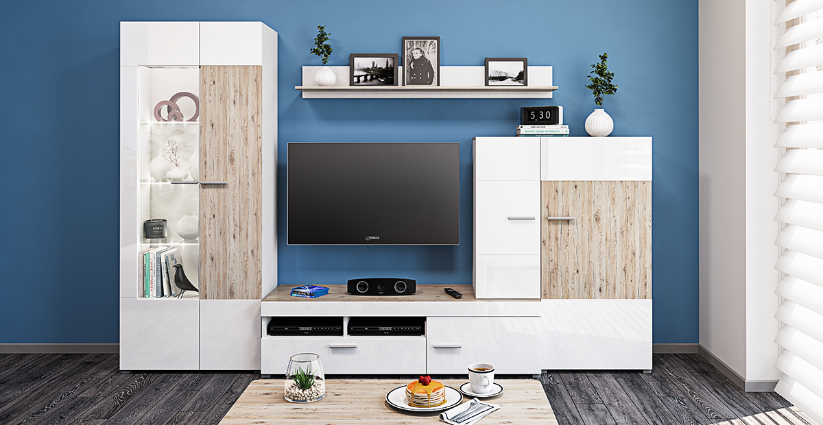 Модульная мебель для гостиной в стильном и гармоничном дизайне. Материал: МДФ, ЛДСП.