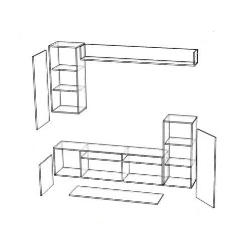 Размер (ШхВхГ): 3500х2200х500 мм. Материал: ЛДСП, стекло.
