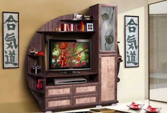 «Токио-3» – это яркое и нестандартное решение для гостиной. Рамочные фасады покрыты пленкой текстуры, имитирующей ткань. Стеклянные вставки декорированы иероглифами, призванными приносить в ваш дом положительную энергетику.
