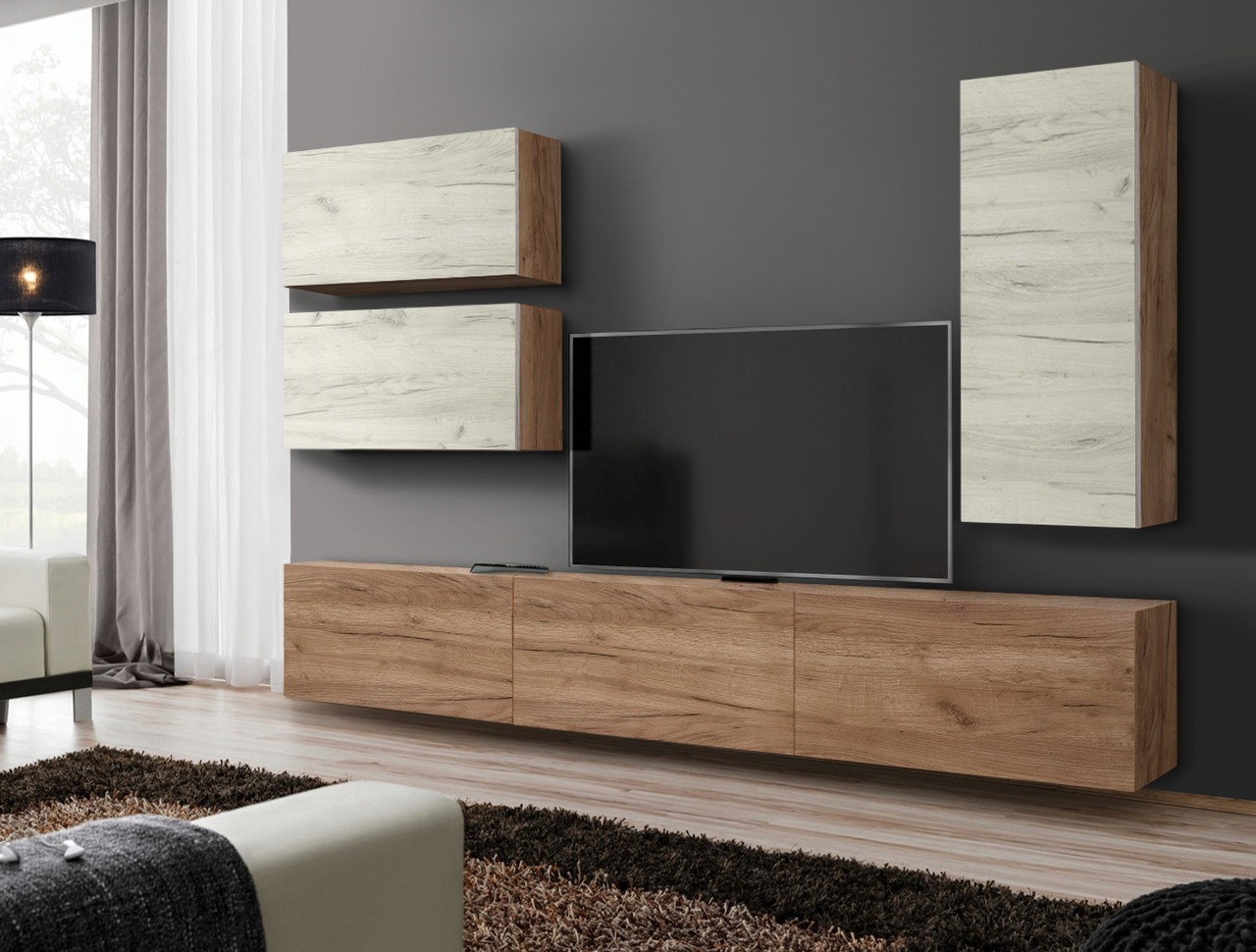 Стенка для гостиной «Венеция СН-121.01» Дуб Крафт Белый - Дуб Крафт Табачный