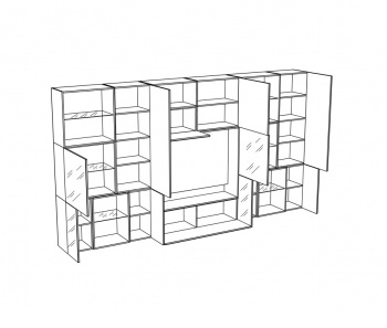 Скандинавская стенка в гостиную. Множество ниш для хранения.