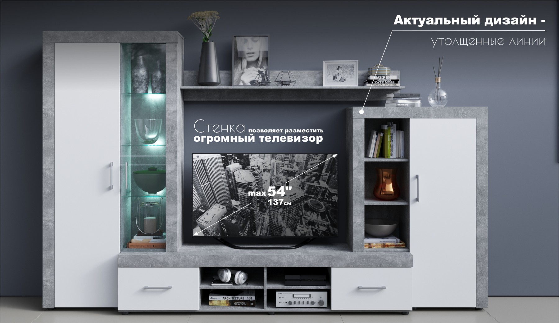 ТВ max: 54 дюйма