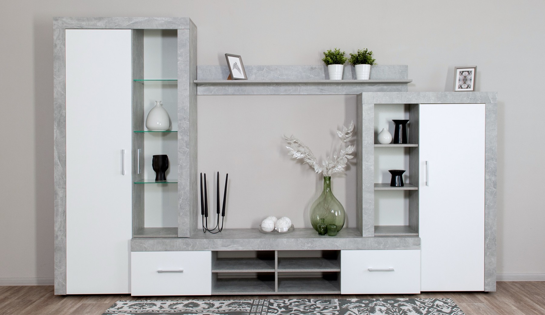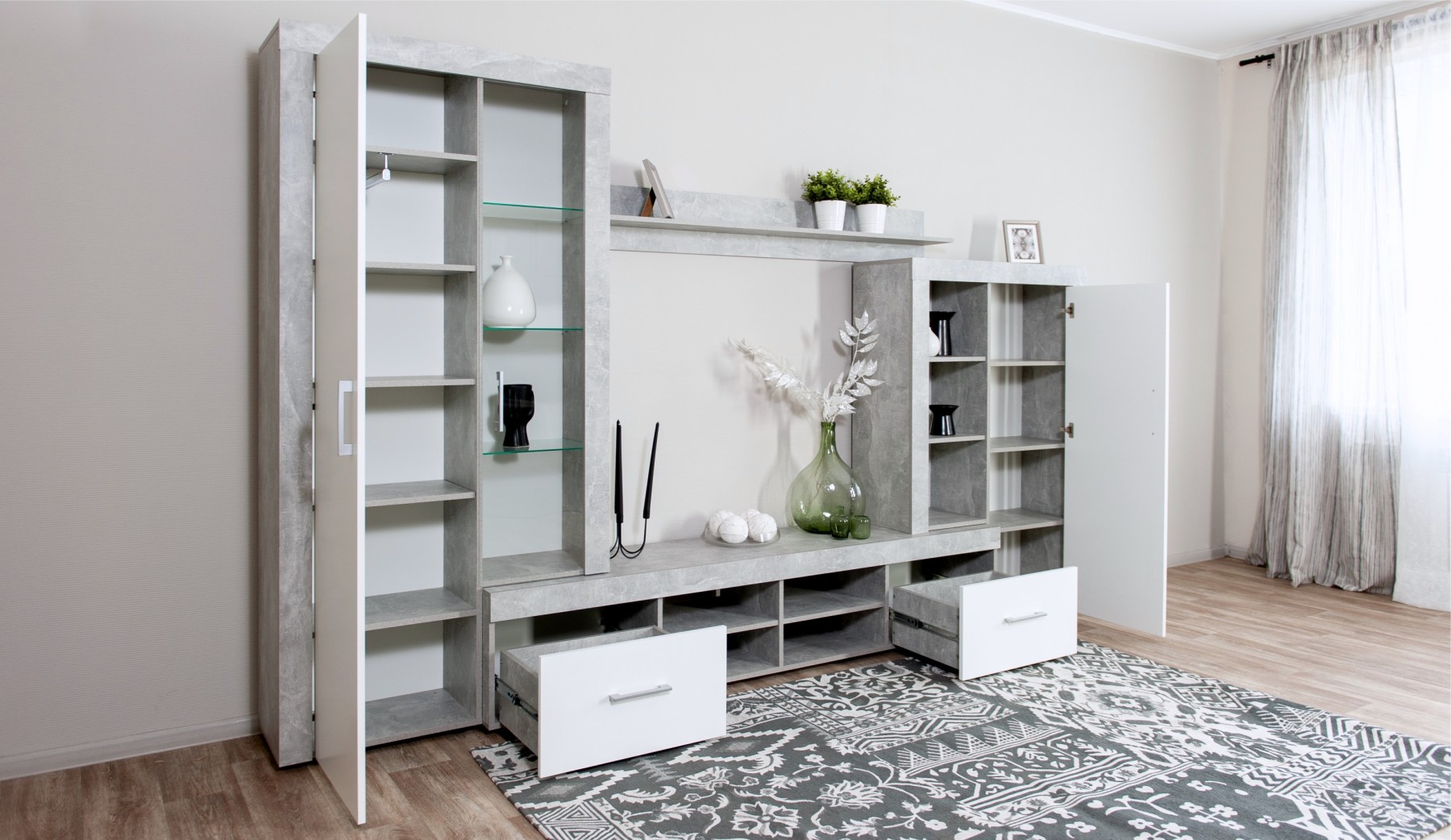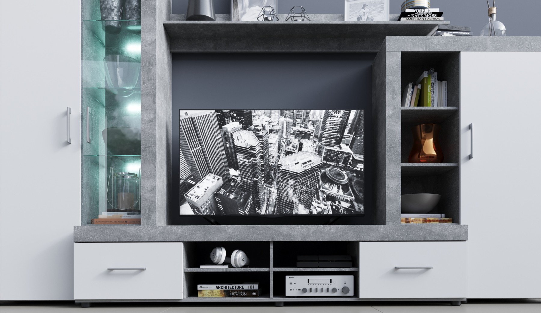 Модульная стенка «Вирола-1» (дуб крафт серый/глянец белый)