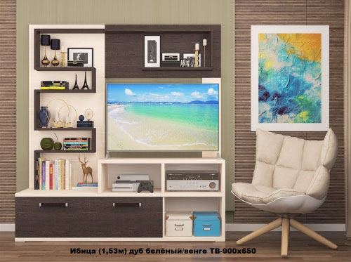 Размер (ШхВхГ): 3700х2120х500 мм. Материал: ЛДСП, зеркало, стекло.