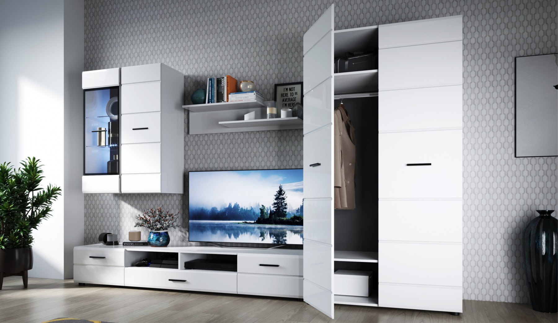 Гостиная модульная «Йорк» с комодом 2,76 м (Белый - Белый глянец)