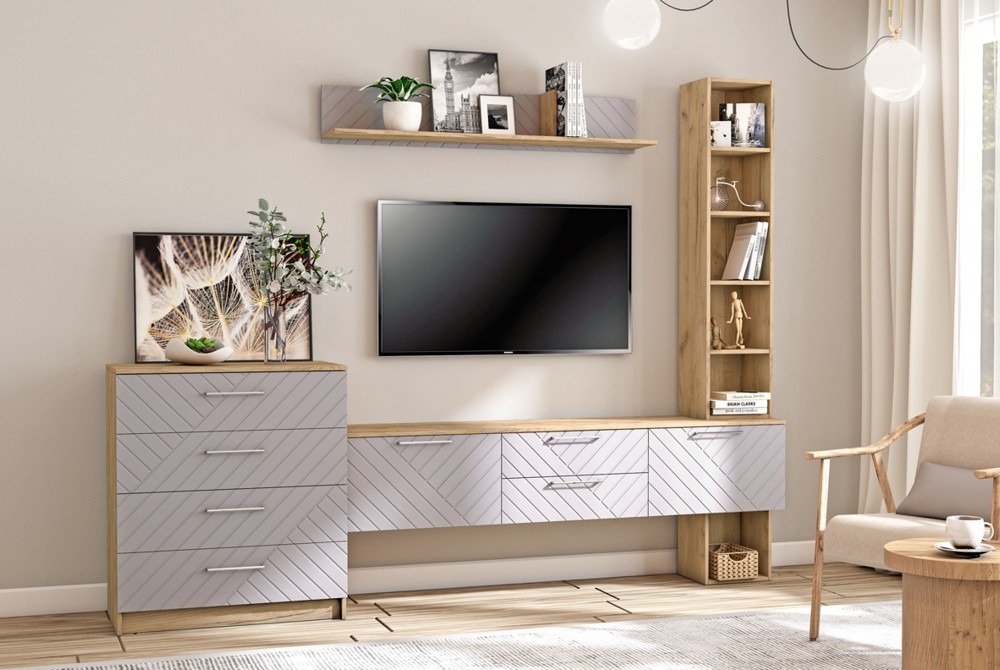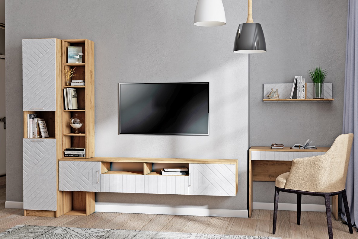 Модульная стенка «Вирола-3» (дуб крафт серый/глянец белый)