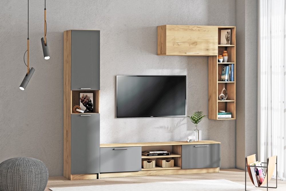 Благодаря большому выбору, вы сами можете сконструировать себе гостиную под ваши потребности. Комбинации модулей позволяют подобрать необходимый размер и наполнение. Возможна установка с фасадами и без.