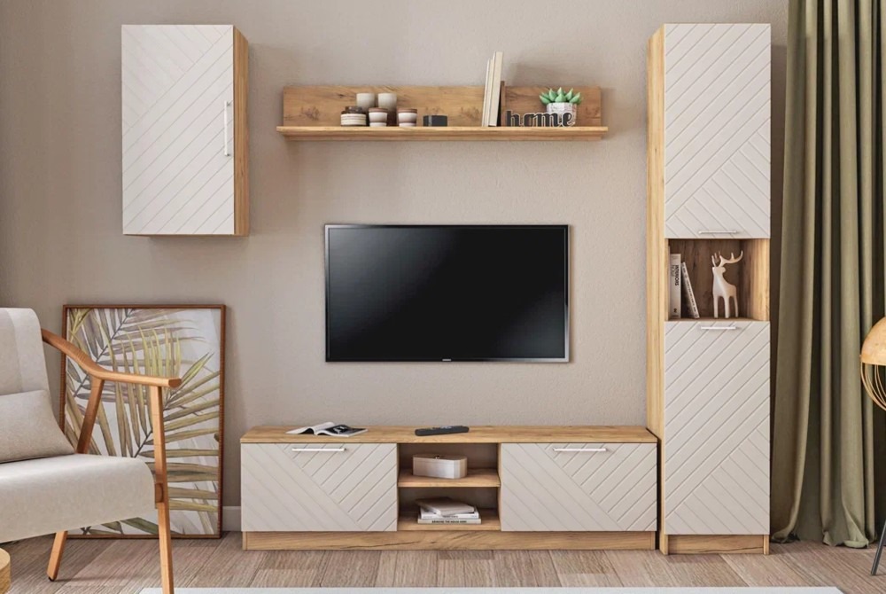 Модульная гостиная в теплом оттенке благородного дуба. Материал: ЛДСП.