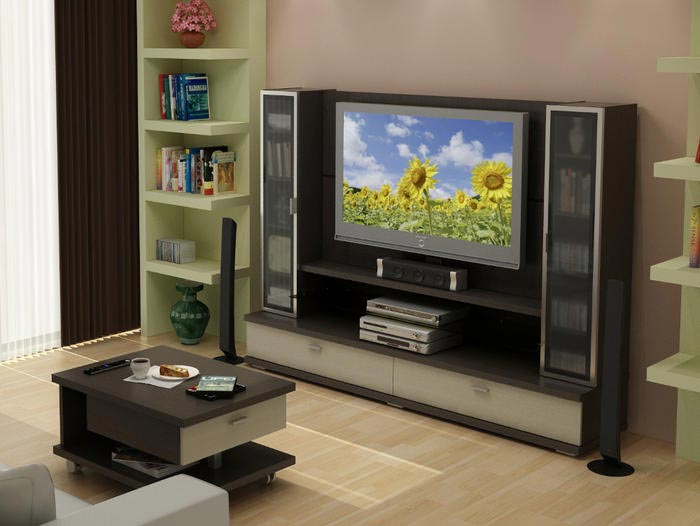 Модель состоит из двух Г-образных модулей. Имеется место для ТВ и открытые полки.