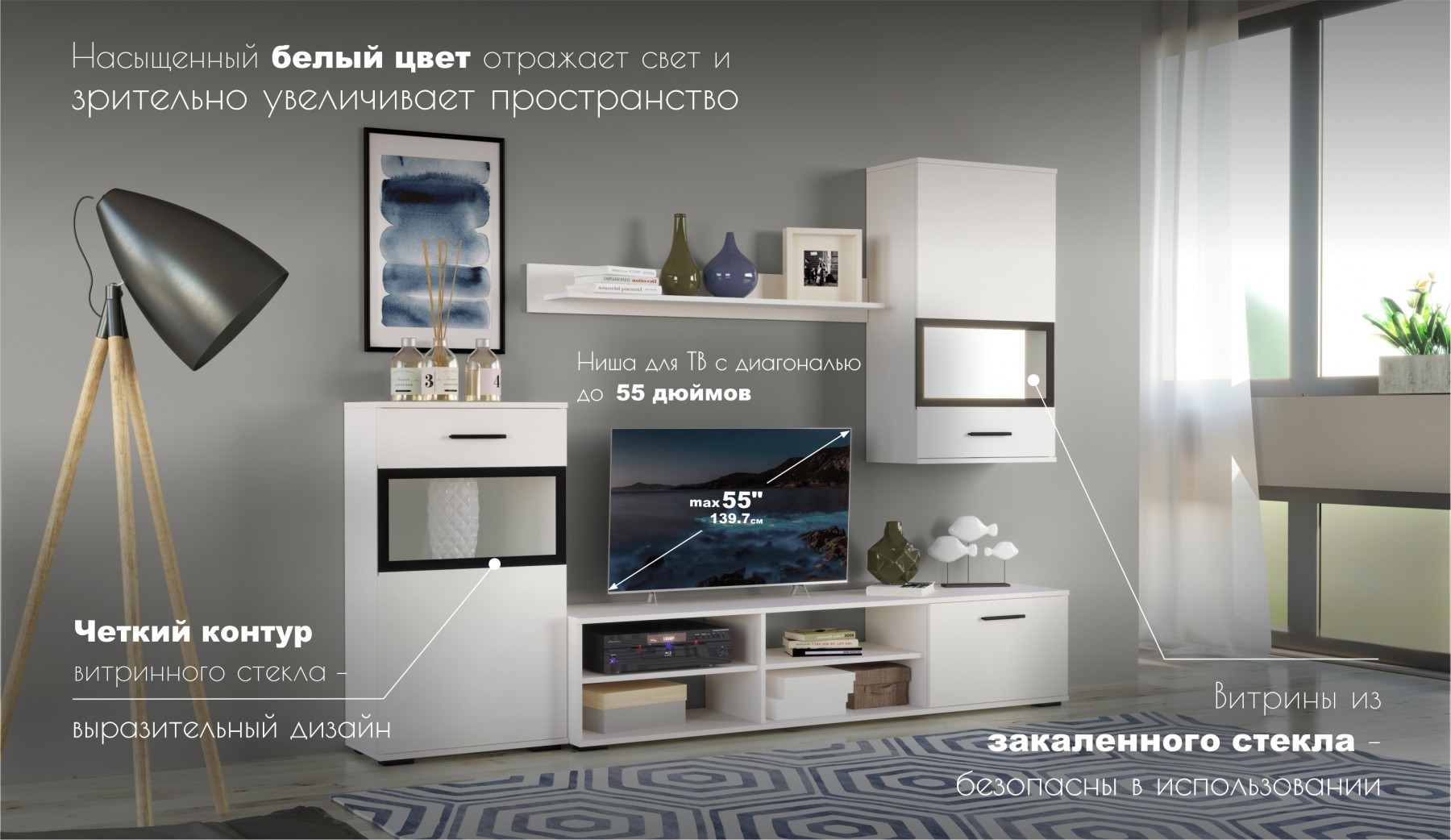 Гостиная «Лия-2» Белый/Черный глянец Рикко
