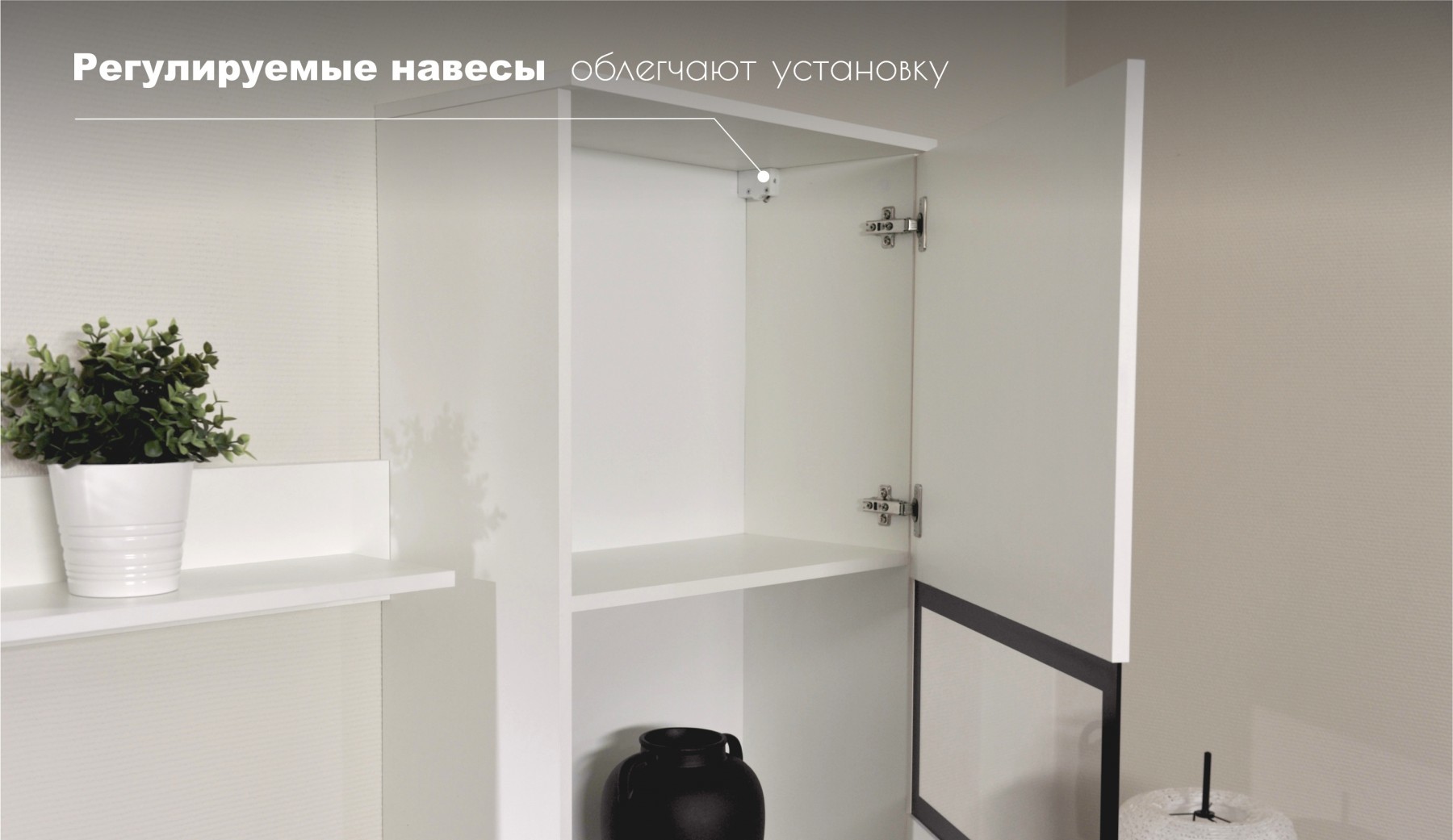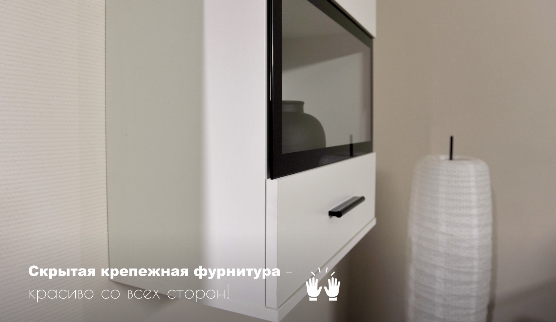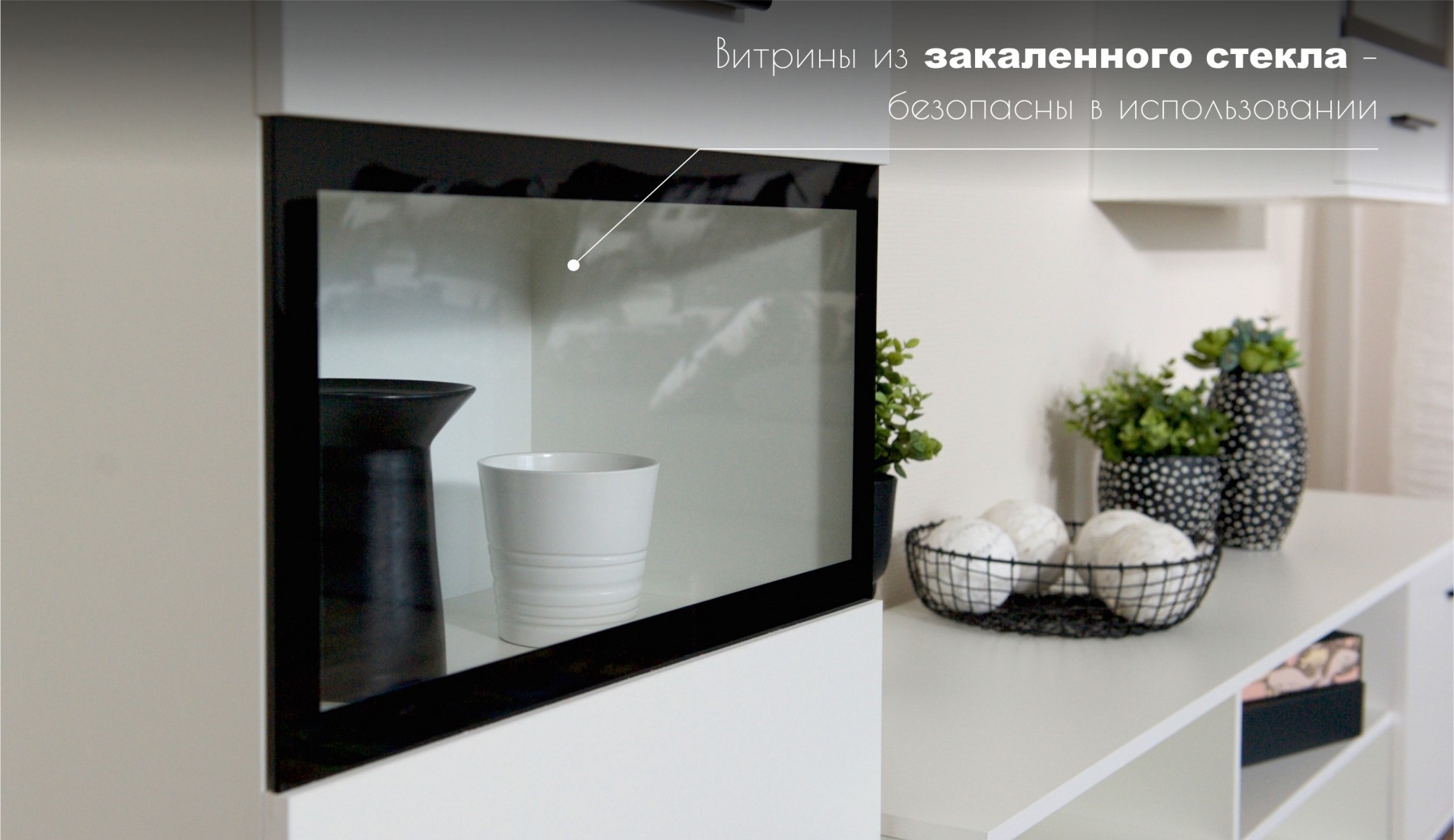 код 104617Черные ручки, опоры и окантовка витрин подчеркивает насыщенный белый цвет комплекта.