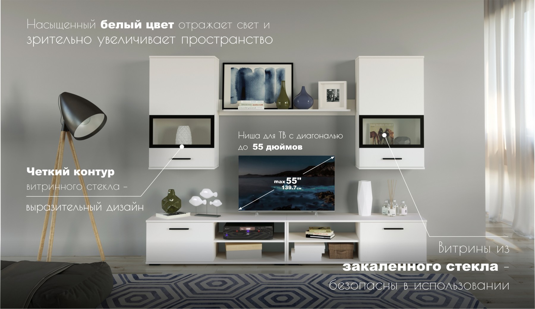 Гостиная «Белла» Комплект 2 - Ясень белый (BTS)