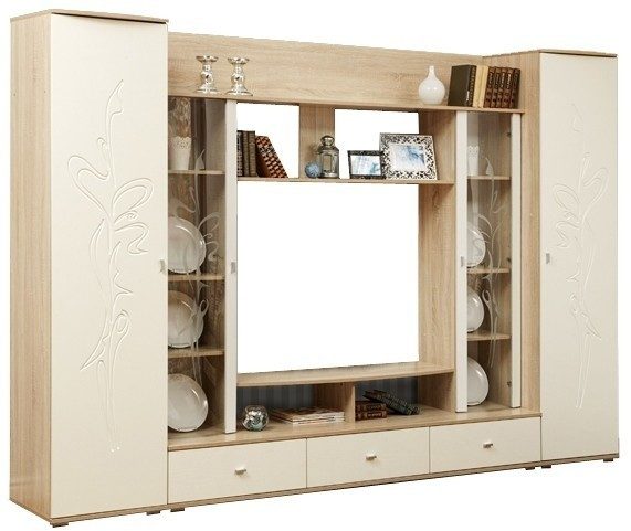 код 113933Вместительная стенка, имеющая три выдвижных ящика и четыре распашных отделения.