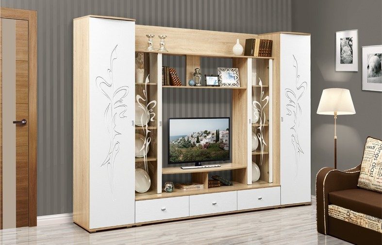Гостиная «Лия-3» Комплект 1 - Сонома/Белый Рикко