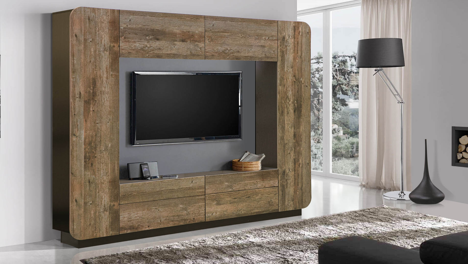 код 116152Вместительная стенка с коричневыми фасадами в древесном декоре.